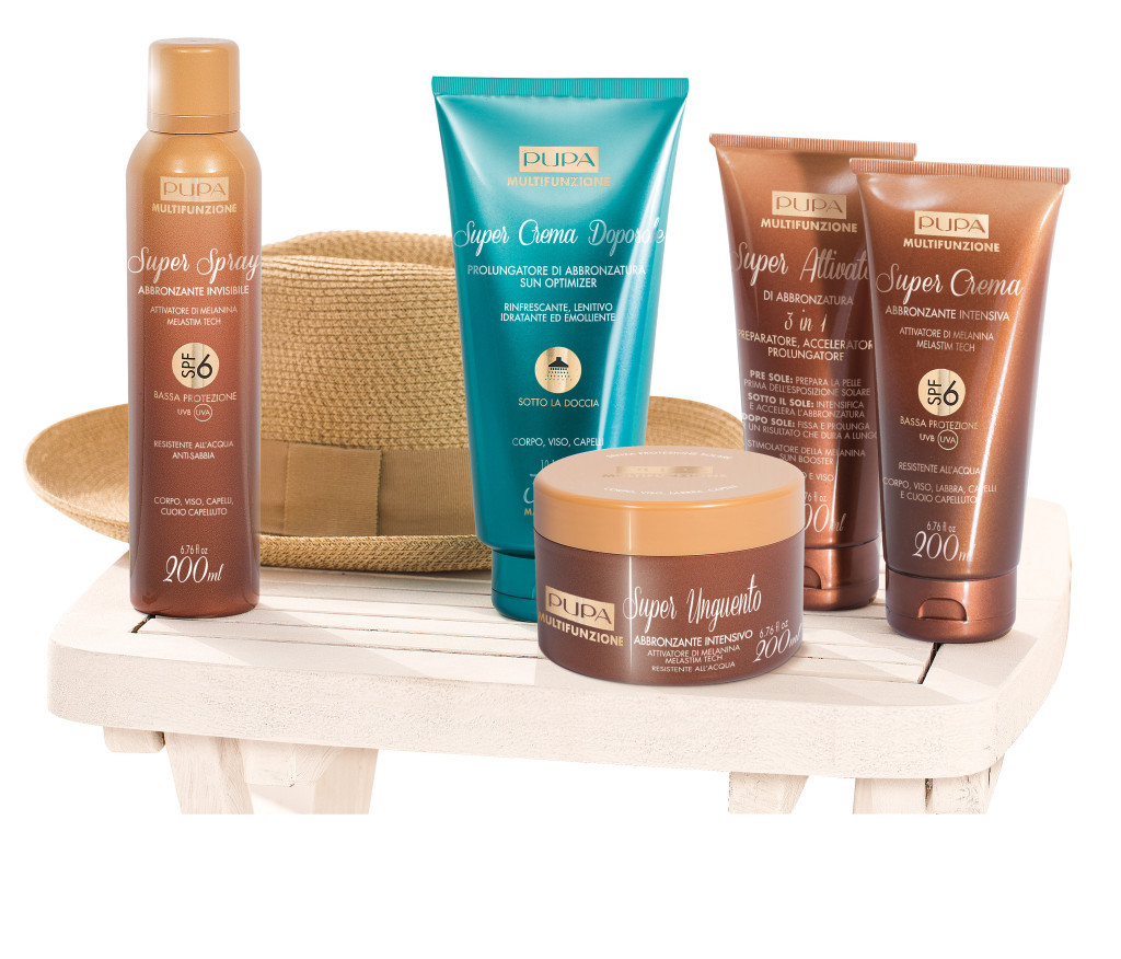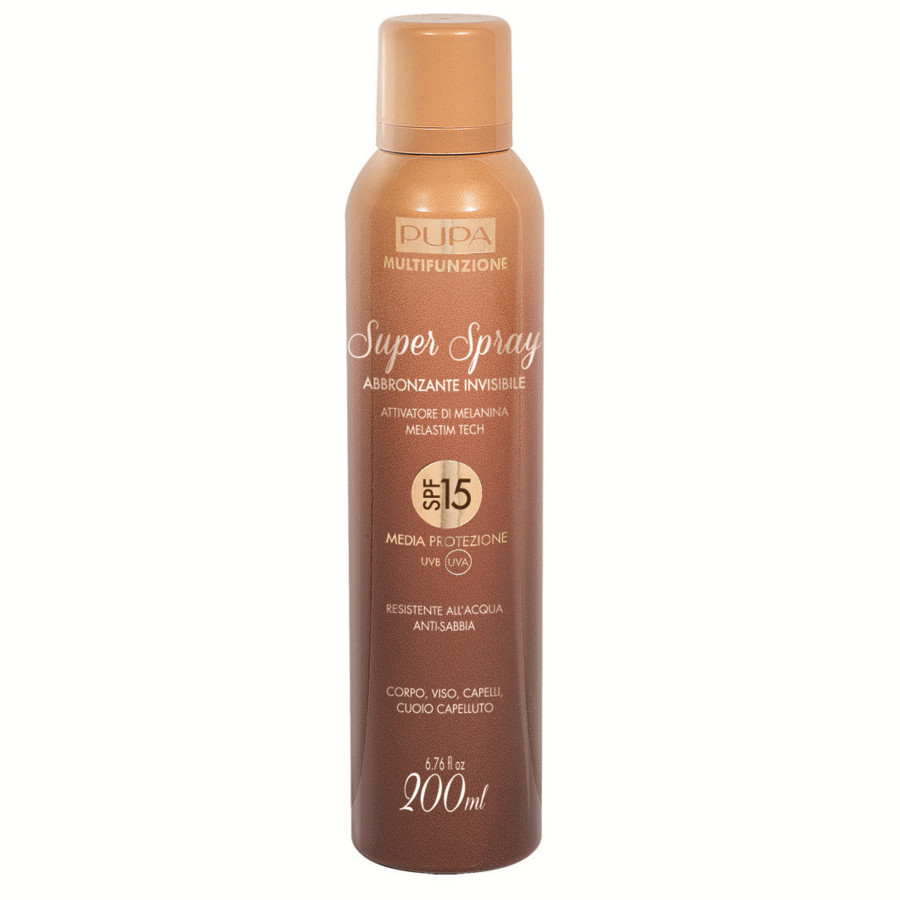 Fa parte della nuova linea di Solari Multifunzione proposti da Pupa per l’Estate 2015. Si tratta di un solare abbronzante, disponibile con fattore di protezione SPF 6, 15 o 30 che garantisce protezione e stimola l’abbronzantura attivando la produzione di Melanina. La texture è leggera e anti-sabbia e appena si applica regala un piacevole effetto fresco. La profumazione è inebriante e lo spray può essere applicato su viso, corpo e anche capelli per proteggerli dai danni dei raggi solari.