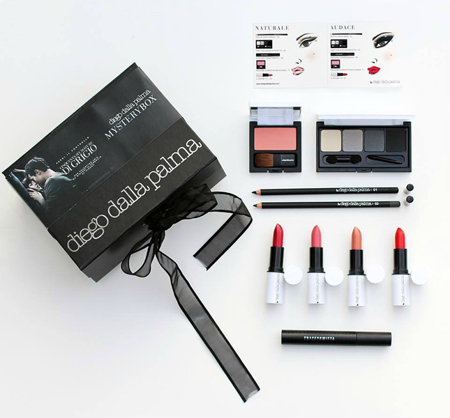 Prima ancora che il film arrivasse nelle sale, erano già disponibili cofanetti dedicati al film. Primo tra tutti il cofanetto di Diego dalla Palma dedicato al film. Film a parte, si tratta di un cofanetto davvero invitante perché non solo comprende un set di ombretti (grigi ovviamente) ed un paio di matite (sempre grigie, ovviamente) che vi permettono di creare facilmente uno smokey eye, ma anche un blush pesca, un mascara e quattro rossetti dal pesca al rosso fuoco che vanno a completare un po’ quel look all’Anastasia Steele, un po’ ragazza della porta accanto, un po’ affascinante maliarda.