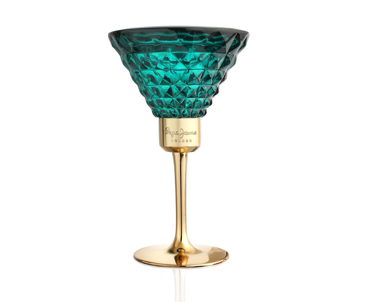 Il design dei flaconi mantiene lo stile innovativo della collezione precedente – un calice da cocktail per lei, uno shaker per lui – mentre un ulteriore tocco di distinzione ed eleganza si ottiene grazie alla combinazione di tappi metallici dorati e bottiglie di vetro prismatiche delicatamente cesellate. I colori del vetro scelti per questa occasione sono uno straordinario verde smeraldo per la fragranza femminile e un intenso blu petrolio per la fragranza maschile.
