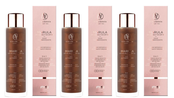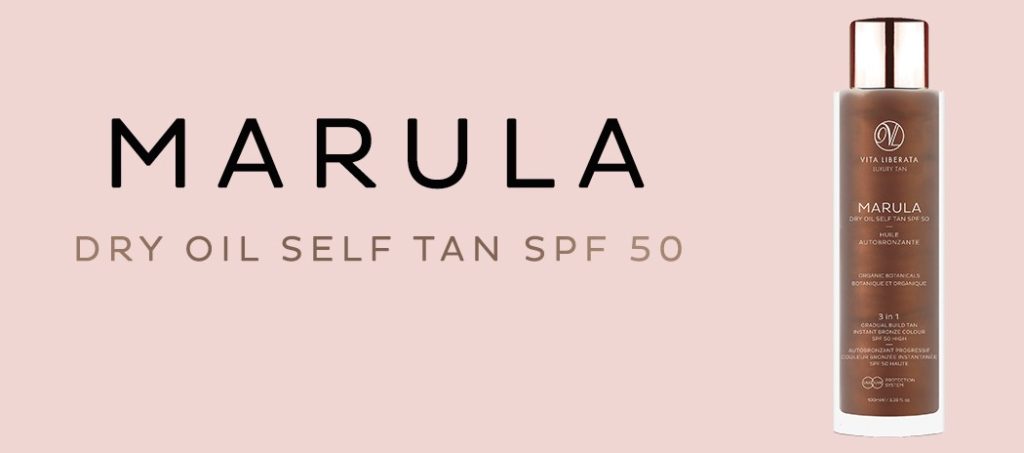 Si tratta di un olio secco autoabbronzante con fattore di protezione solare SPF 50. È un prodotto decisamente innovativo in quanto protegge dai raggi solari ed allo stesso tempo promuove il colorito della pelle incrementando la naturale abbronzatura. La formula in olio è arricchita con agenti idratanti e nutrienti, perfetti per una pelle più morbida e liscia. Marula dry oil self tan è ricco di Olio di Marula Africano, un potente antiage che si prende cura della nutrendola a fondo, Olio di Cocco e Olio di Monoi, una vera e propria coccola sia per la pelle che per i sensi.