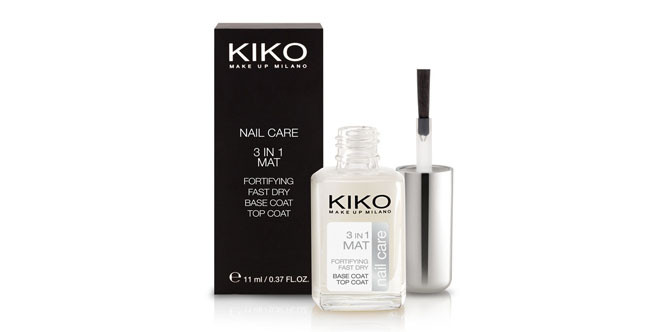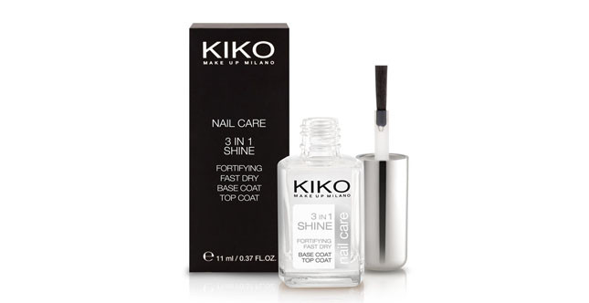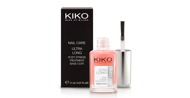Kiko 3 in 1 base coat indurente Effetto Mat, è una base opacizzante che può essere usata anche da sola come smalto pastello e possiede proprietà fortificanti ed indurenti. Kiko 3 in 1 shine base coat Protettivo, protegge l’unghia dallo smalto ed uniforma la superficie rendendola più dura grazie alla presenza dell’Hexanal. Kiko Smooth base coat Protettivo, con stesura semplice e veloce grazie al pennello piatto, permette di lisciare l’unghia e di ristrutturarne la superficie; contiene antiossidanti della Vitamina E con proprietà idratanti e può essere usato anche da solo come semplice smalto color pastello. Kiko Ultra Long base coat stimolatore della crescita, è specifico per unghie corte che tendono a rompersi facilmente, la formula è ricca di agenti rinforzanti che permettono anche una crescita più rapida dell’unghia grazie alle Vitamine A, C ed E con proprietà antiossidanti, anti radicali liberi e che agevolano la formazione della cheratina. Il base coat Ultra Long di Kiko è anche consigliato come trattamento post ricostruzione unghie.