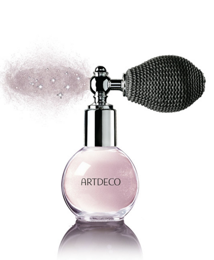 Il tocco finale è affidato alla polvere glitter Artic Beauty Dust, nella colorazione “starlight rosé”, di Artdeco. Nel suo bellissimo flacone con la pompetta retrò, la polvere glitter con un pizzico di vaniglia ha un effetto raffinato su décolleté, braccia e capelli. La finissime particelle della scintillante polvere si fondono perfettamente con l’incarnato e rendono la pelle seducente come il luccichio di piccoli diamanti al chiaro di luna.