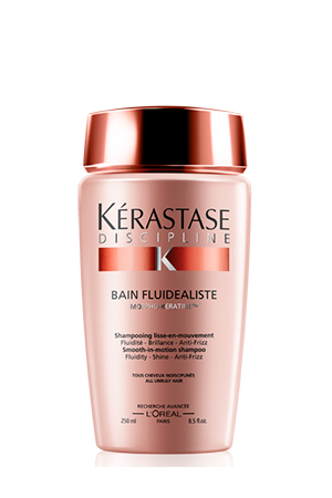 Per la versione relaxed, utilizzate lo shampo Bain Fluidealiste e il trattamento anticrespo Fluidissime della linea Discipline di Kérastase, quindi asciugate i capelli con phon e spazzola pettinando il ciuffo in modo morbido e naturale. Per un risultato long lasting, definite la forma con della cera, per esempio Medavita Cera Mat Leggera.