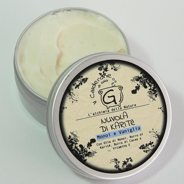 Il calderone di gaia nuvola di Karité monoi e vaniglia: per idratare in modo più intenso le parti del corpo che necessitano di maggiore idratazione. Profumo paradisiaco