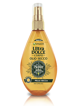 Garnier olio secco Ultra dolce corpo oliva mitica: dopo la doccia sulla pelle umida per idratarla e profumarla delicatamente.