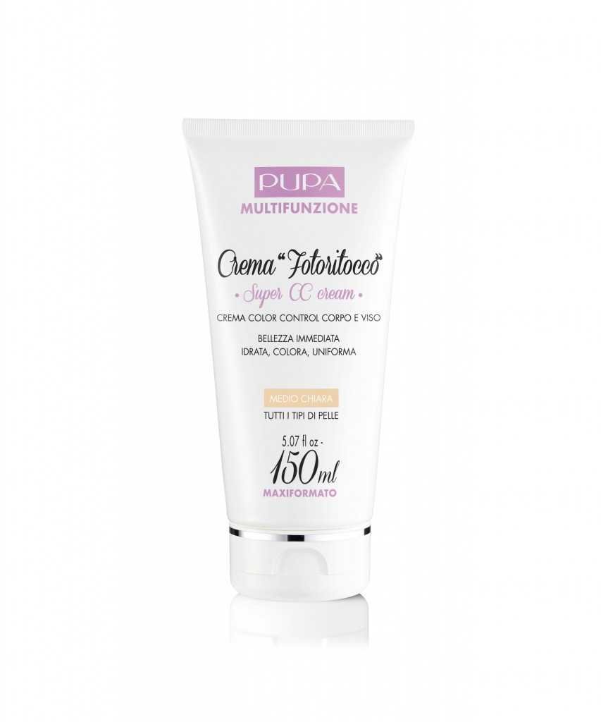 - PUPA Milano Crema “Fotoritocco” – CC Cream. Per tutti i tipi di pelle adatta a viso e corpo in un formato da 150ml. (16,90€)