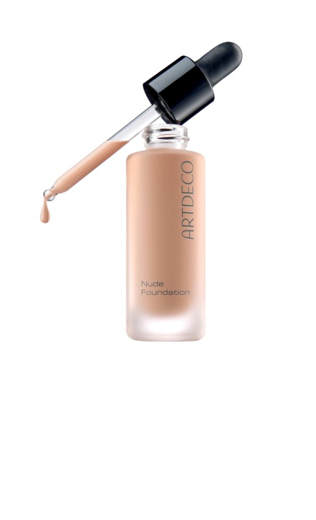 Nessun effetto maschera grazie al film ultrafine del nuovo fondotinta Nude Foundation di Artdeco, che corregge le irregolarità senza dare spessore, mentre le speciali particelle sferiche di polvere opacizzano la pelle lucida e le donano un aspetto più liscio attenuando visivamente le rughe.