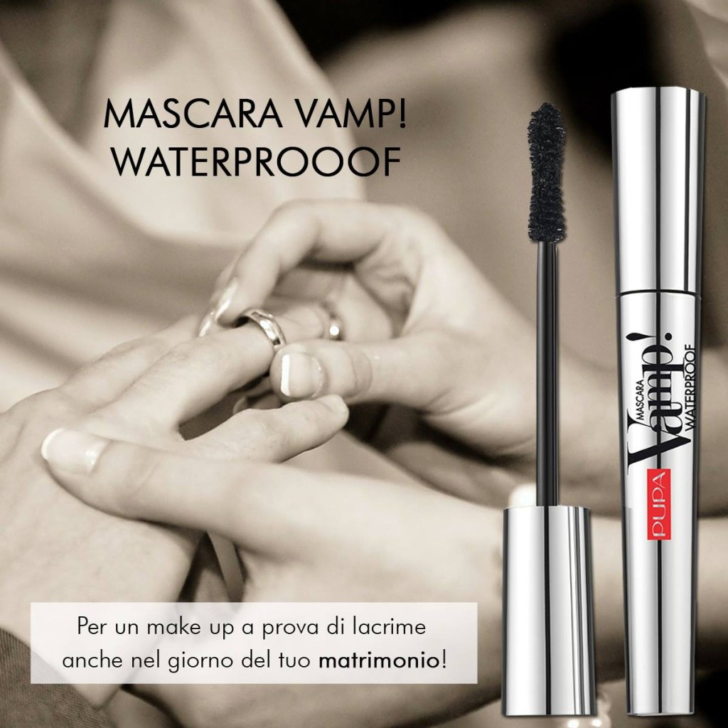 Anche Pupa ha proposto il suo mascara bestseller in versione waterproof. Si tratta del Mascara Vamp! Waterproof, dallo scovolino a clessidra realizzato in setole sintetiche. La formula waterproof assicura una lunghissima tenuta del prodotto, rendendolo a prova di acqua, lacrime e sudore. La texture è meno cremosa rispetto alla versione classica ma il prodotto riesce ugualmente a donare alle ciglia un effetto volume intrigante per uno sguardo impeccabile.
