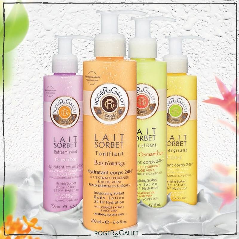 Roger&Gallet dispone di un’ampia gamma di latte per il corpo dalle piacevoli profumazioni. La texture è leggera e fondente, la formula ricca di oli vegetali che si prendono cura della pelle con delicatezza, lasciandola piacevolmente profumata. Le formulazioni della linea non contengono Parabeni, né Siliconi bensì un’alta percentuale di ingredienti naturali di origine vegetale.