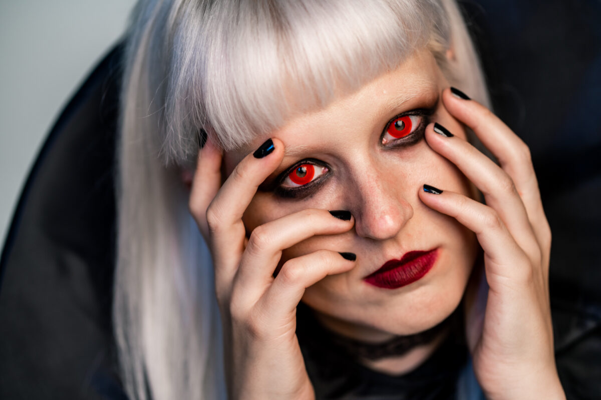 Per perfezionare il look da vampiro assetato di sangue le lenti a contatto rosse o gialle sono perfette.