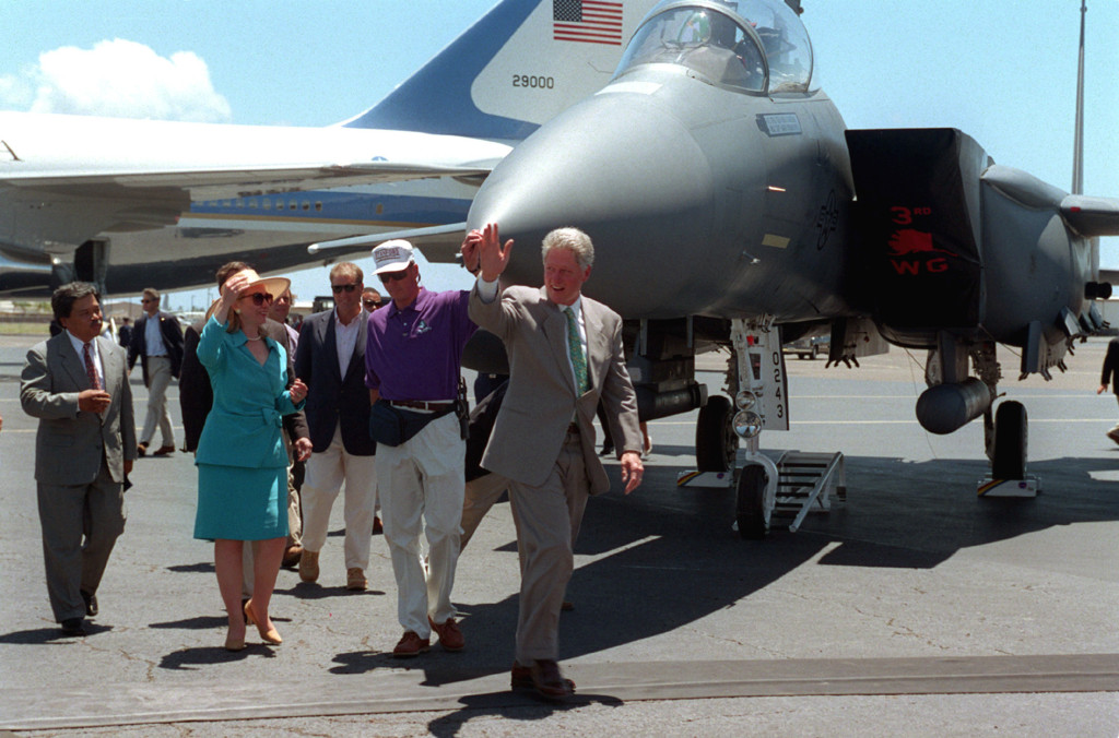 Negli anni in cui il marito Bill è Presidente, l’ex First Lady e Segretario di Stato, oltre che due volte Senatrice degli Stati Uniti, sfoggia modelli composti da gonna al ginocchio e giacca sciancrata con dettagli “vezzosi” come abbottonature sbieche e cinture da annodare in vita, declinati in colori vivaci e in tonalità pastello.
