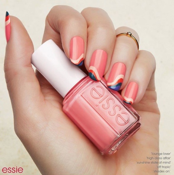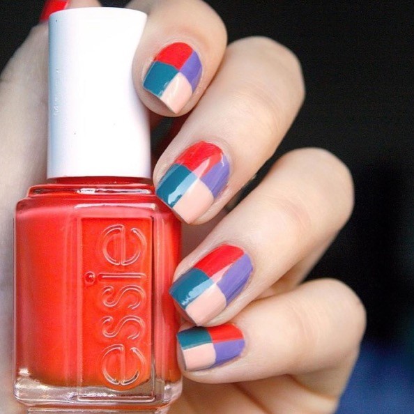 Il color block è sempre di tendenza, specialmente se abbinato ad uno stile grafico. Sì dunque alla realizzazione di motivi geometrici, più o meno squadrati o curvi, utilizzando colori intensi e in contrasto fra loro. Anche in questo caso l’effetto può essere realizzato con smalti dal finish diverso: satinato, lucido, metallico, opaco. Essie, per esempio, propone un color block deciso ed intenso divedendo l’unghia in 4 spicchi colorati con diverse nuance.