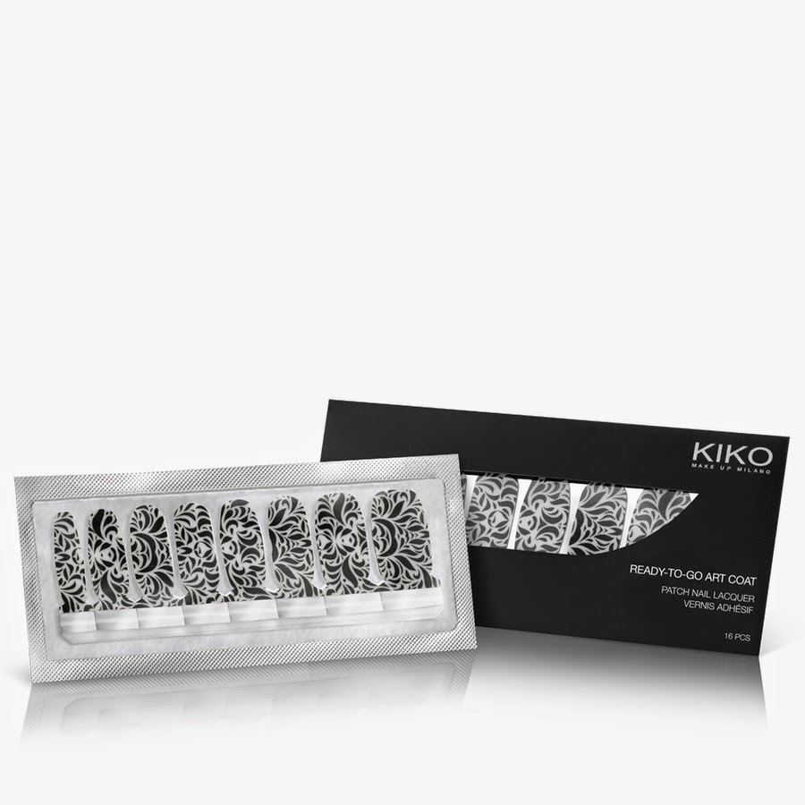 Ready-to-GO colour! è invece la proposta di nail patch by KIKO, un kit completo di tutto quello che vi servirebbe per una normale manicure, base, smalto colorato e top coat, il tutto in un unico prodotto. Oltre a tinte stravaganti da poco è stata inserita una gamma monocromatica con blu elettrici, rossi intensi, grigi e nero.