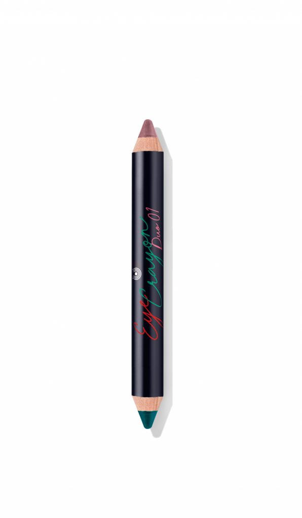 Decisamente originale e indicato per le ragazze con gli occhi verdi è l’abbinamento del bronzo con il color petrolio, come nell’Eye Crayon Duo 01 della collezione High Spirits di Dr. Hauschka, che ha da un lato l’eye definer petrolio e dall’altro l’eyeshadow bronzo.