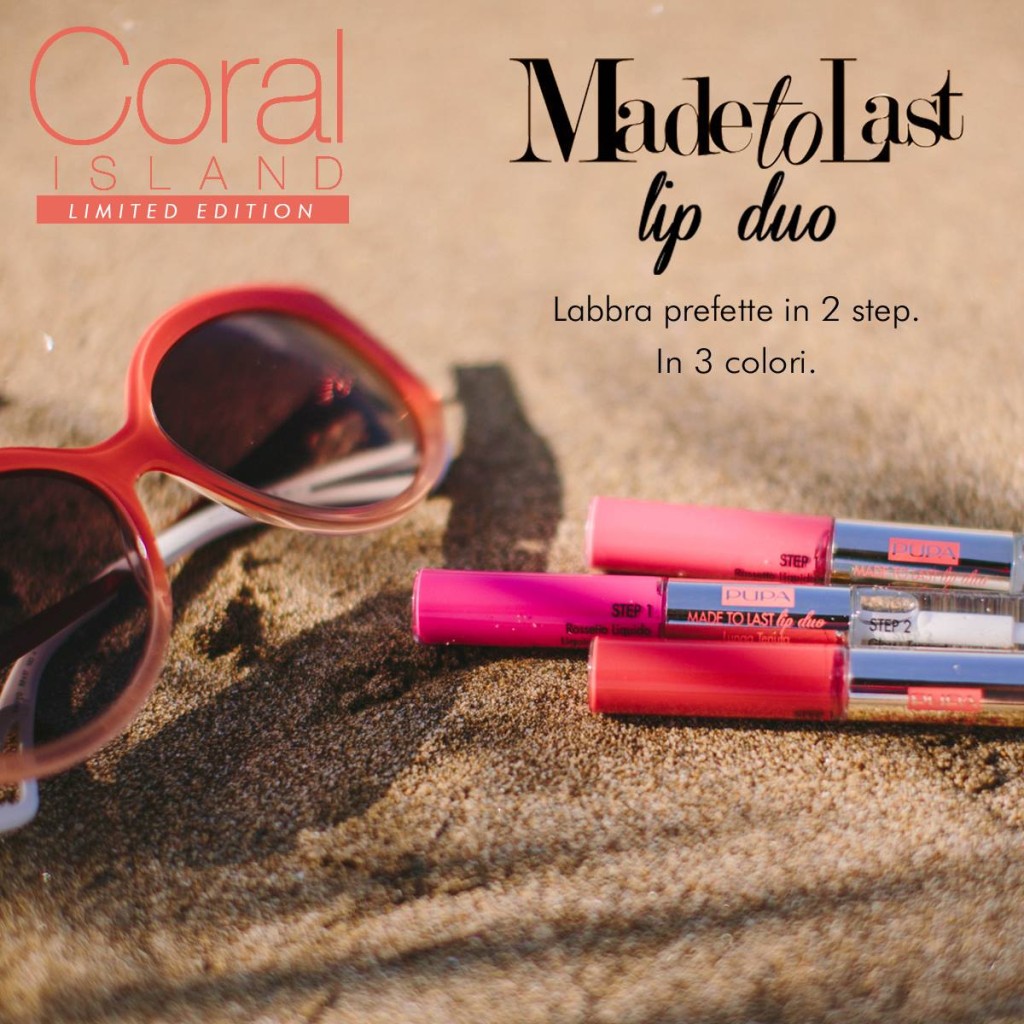 Con il trucco delle labbra è possibile giocare di più. Possiamo utilizzare lipgloss, rossetti, tinte a lunga tenuta o semplici balsami labbra colorati. Per chi desidera un colore duraturo la scelta più indicata è certamente quella delle tinte, che necessitano però di labbra perfettamente esfoliate ed idratate. Le nuove tinte di Pupa Made To Last Lip Duo, proposte nella collezione Coral Island sono a lunghissima tenuta e l’idratazione è data dal gloss trasparente da applicare come top coat e riapplicare nel momento in cui si sentono le labbra.