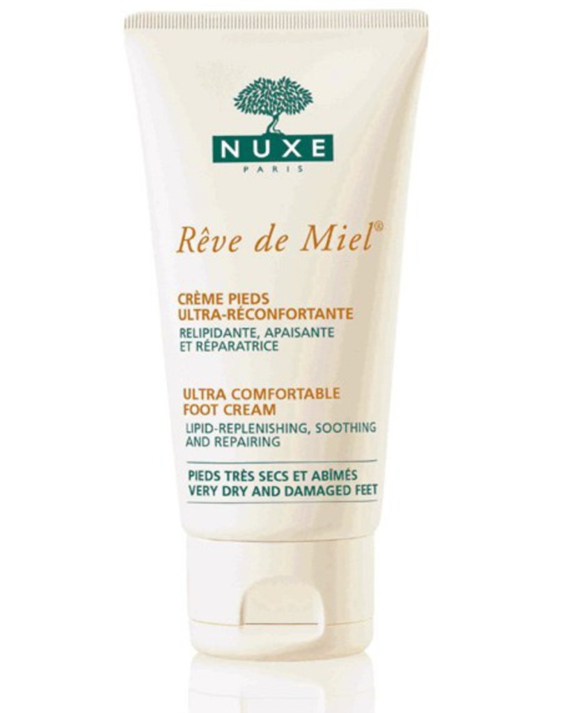 La Crema Piedi Ultra Confortevole Rêve de Miel® di Nuxe, per esempio, è ricca di miele di Acacia, oli vegetali e burro di karitè, aiuta ad idratare i piedi contrastando la formazione di pelle secca. Il miele ha infatti molte proprietà benefiche per la pelle, incluso un ottimo potere rigenerante.