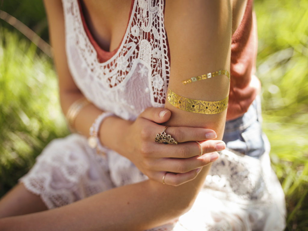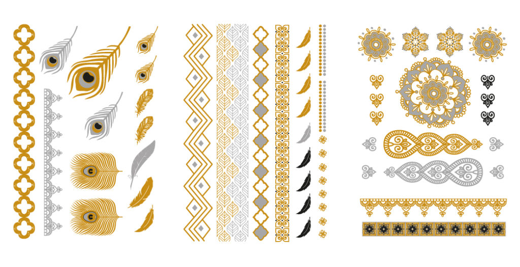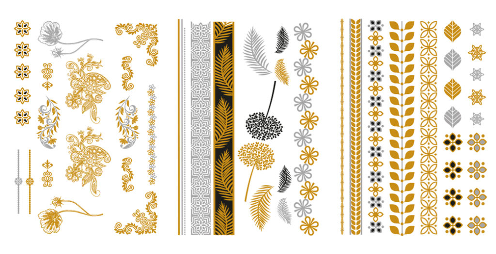 In particolare i tatuaggi temporanei in colori metallici come l’argento, ma soprattutto quelli in oro, hanno il pregio di esaltare la tintarella e conferire un tocco glamour.