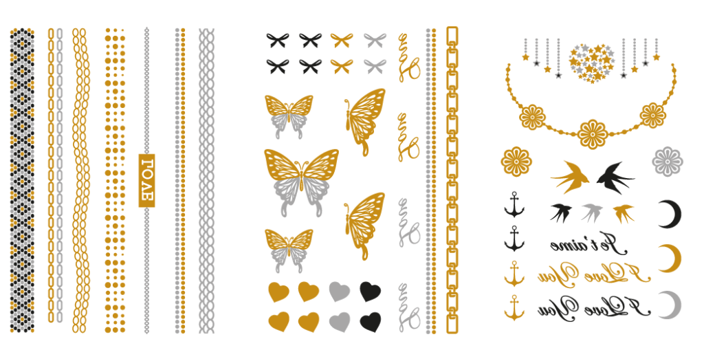 Se desideri un tatuaggio alla moda ma non vuoi che sia permanente, il tatuaggio temporaneo d’oro è la scelta che fa per te.