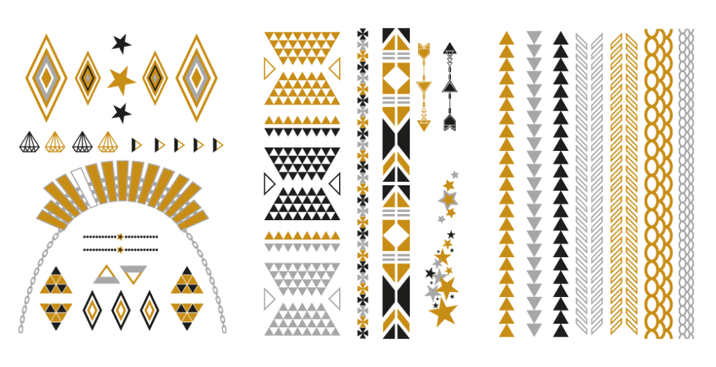 I tatuaggi dorati, infatti, possono essere una splendida ed originale idea per abbinarli ad un abito da sera speciale, impreziosendolo. Ma sono allo stesso tempo l’ideale da indossare a mare o per un rilassante aperitivo in spiaggia.