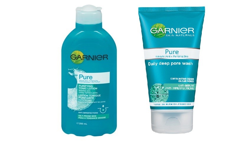 Garnier: Pure Tonico Astringente contiene una combinazione di acido salicilico e zinco per purificare in profondità.