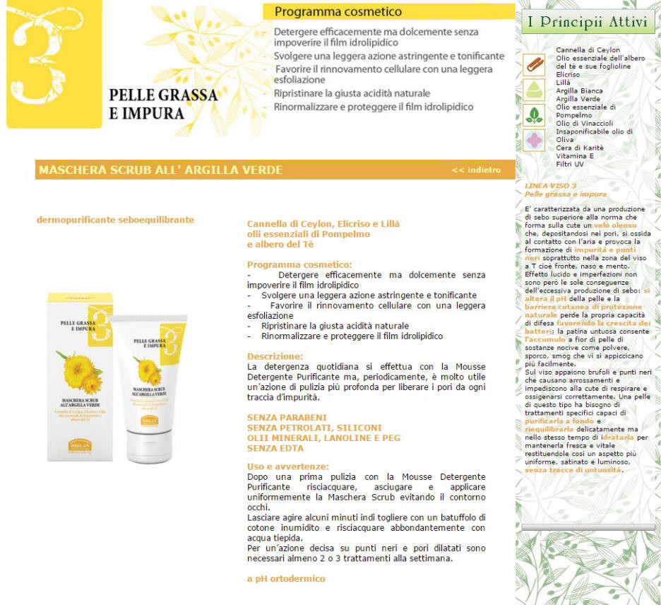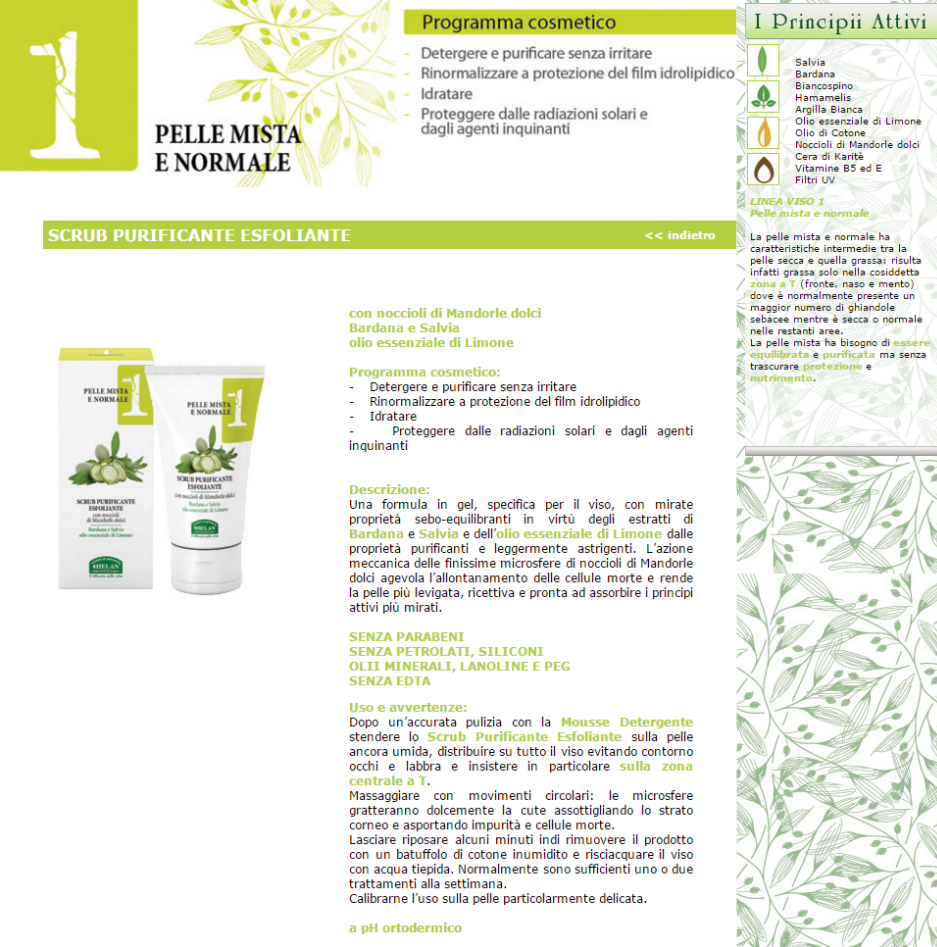 Le Linee Viso 1, 2, 3 e 4 di Helan sono pensate ciascuna per una determinata tipologia di pelle. Lo scrub è presente in tre delle quattro linee, pensato per rispondere a diverse esigenze e problematiche. Nella Linea 1 troviamo lo Scrub Purificante Esfoliante, dall’azione astringente, indicato per pelli miste e normali. La Linea 2, invece, prevede una Maschera Gommage Delicata, ideale per la pelle secca e sensibile. Nella Linea 3, dedicata alla pelle impura, troviamo la Maschera Scrub all’Argilla Verde, particolarmente indicata per contrastare l’insorgenza di imperfezioni. In ciascuna linea troviamo un mix prezioso di ingredienti naturali che si prendono cura della pelle con delicatezza.