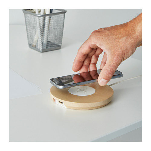 La collezione IKEA comprende anche prodotti non integrati nei mobili, come le basi singole o multiple utilizzabili in tutte le stanze della casa o in ufficio come ad esempio NORDMÄRK, base di ricarica per cellulari disponibile in bianco o betulla anche questa con porta USB per la ricarica di dispositivi aggiuntivi.