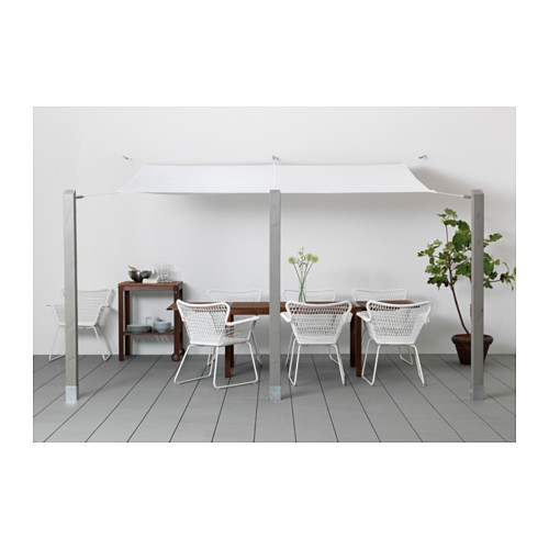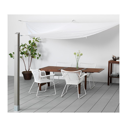 Se volete un’ulteriore copertura o desiderate, almeno in primavera, quando ancora non è così caldo, coprire il tavolo da esterno per un pranzo in famiglia, date un occhio alle economiche vele di Ikea e di Maison du Monde. Dyning di Ikea è realizzata in tessuto e come si legge nel catalogo, offre un’ottima protezione dai raggi UV grazie al fattore UPF (fattore di protezione dei raggi ultravioletti) di 25+ che blocca il 96% dei raggi UV. Il parasole di Maison du Monde è sempre in tessuto, ma è disponibile in verde, oltre alla classica versione bianca, per dare un tocco di brio al vostro outdoors!