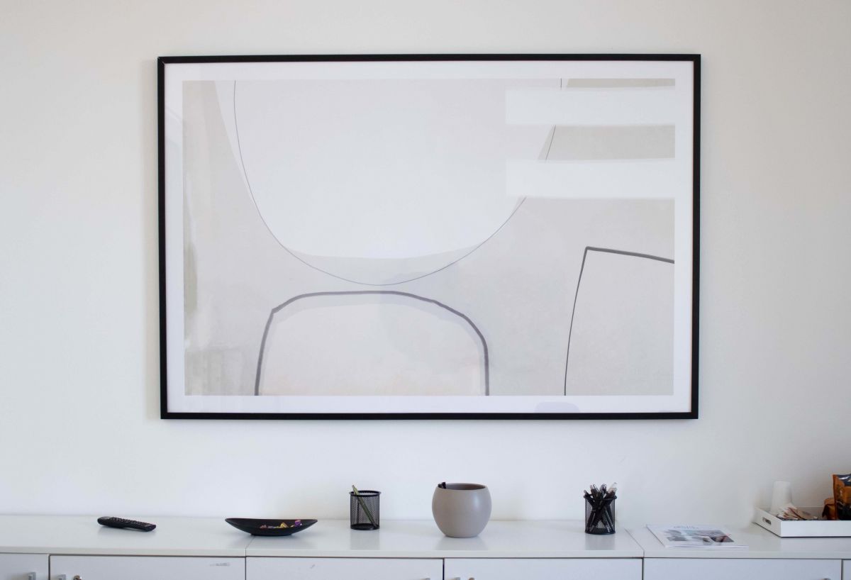Beige Balance (100×150) – Cornice nera (100×150) plexiglass
