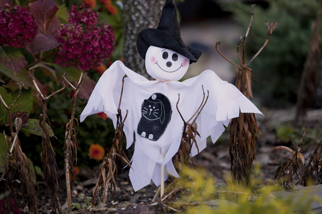 Una decorazione che potrete far costruire ai bambini sono i fantasmini da infilzare nel terreno e nascondere fra le piante.