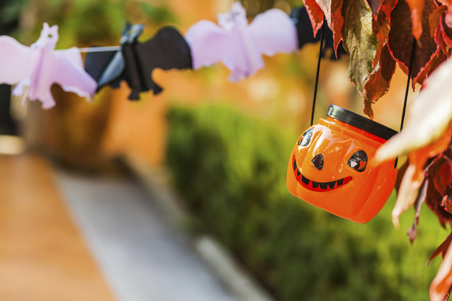 Tante idee per decorare il vostro giardino o il vostro ufficio con pipistrelli di carta, zucche e fantasmini spaventosi nella notte di Halloween