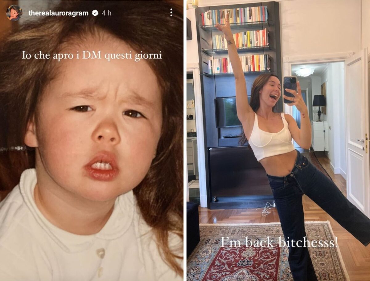 Aurora Ramazzotti è tornata sui social con la solita ironia che la contraddistingue, pubblicando una serie di foto del suo volto quando era piccola con espressioni decisamente simpatiche e facendo riferimento a quello che sta succedendo in questi giorni e a tutto quello che si sta dicendo su di lei: “Io che apro i DM in questi giorni”, “sempre io che provo a stare alla larga dai social”.