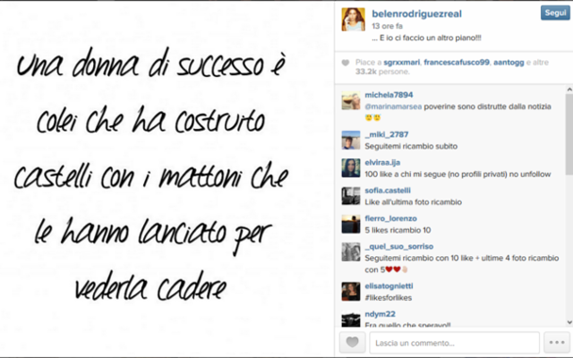 Il mistero sulla storia tra Belen e Stefano s’infittisce: Belen è stata avvistata nel noto locale milanese Nobu, il ristorante giapponese di proprietà di Armani, insieme al calciatore Marco Borriello, sua vecchia fiamma. I due non erano soli, ma di sicuro si è trattato di un avvistamento accertato in un momento particolarmente delicato nella vita della show girl. Forse stiamo solo fantasticando, o forse è da tener buona la regola secondo cui quando un argomento suscita tanto rumore intorno un fondo di verità c’è… Tanto i nostri protagonisti non tarderanno a rendere pubbliche loro notizie attraverso i rispettivi social e noi saremo all’erta per tenervi aggiornati!
