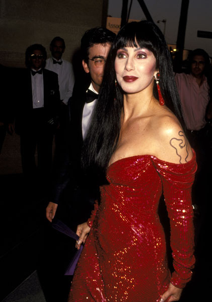 Negli anni ’80 Cher , trasferitasi a New York, si catapulta nel vero mondo del cinema, ottenendo una nomination all’Oscar per la sua interpretazione della compagna di stanza lesbica di Meryl Streep nel film Silkwood. Per lo stesso film, vince un Golden Globe come migliore attrice non protagonista, e grazie al ruolo recitato in Mask , Cher riceve il premio per la migliore interpretazione femminile al Festival di Cannes e una nomina ai Golden Globes. Alla fine degli anni ’80 recita in Le streghe di Eastwick, Suspect – Presunto colpevole ed infine Stregata dalla luna, per il quale riceve l’Oscar come migliore attrice. All’esordio dei 40 anni decide di ritornare alla musica con un album dal nome Cher, che riscontra grande successo, disco di Platino in America con più di 3 milioni di copie del mondo. Nell’89 dall’album Heart of Stone con più di 4 milioni di copie vendute, viene pubblicato il singolo If I Could Turn Back Time, molto discusso in cui Cher indossa un vestito trasparente dal quale si vede il tatuaggio di una farfalla sulle natiche!
