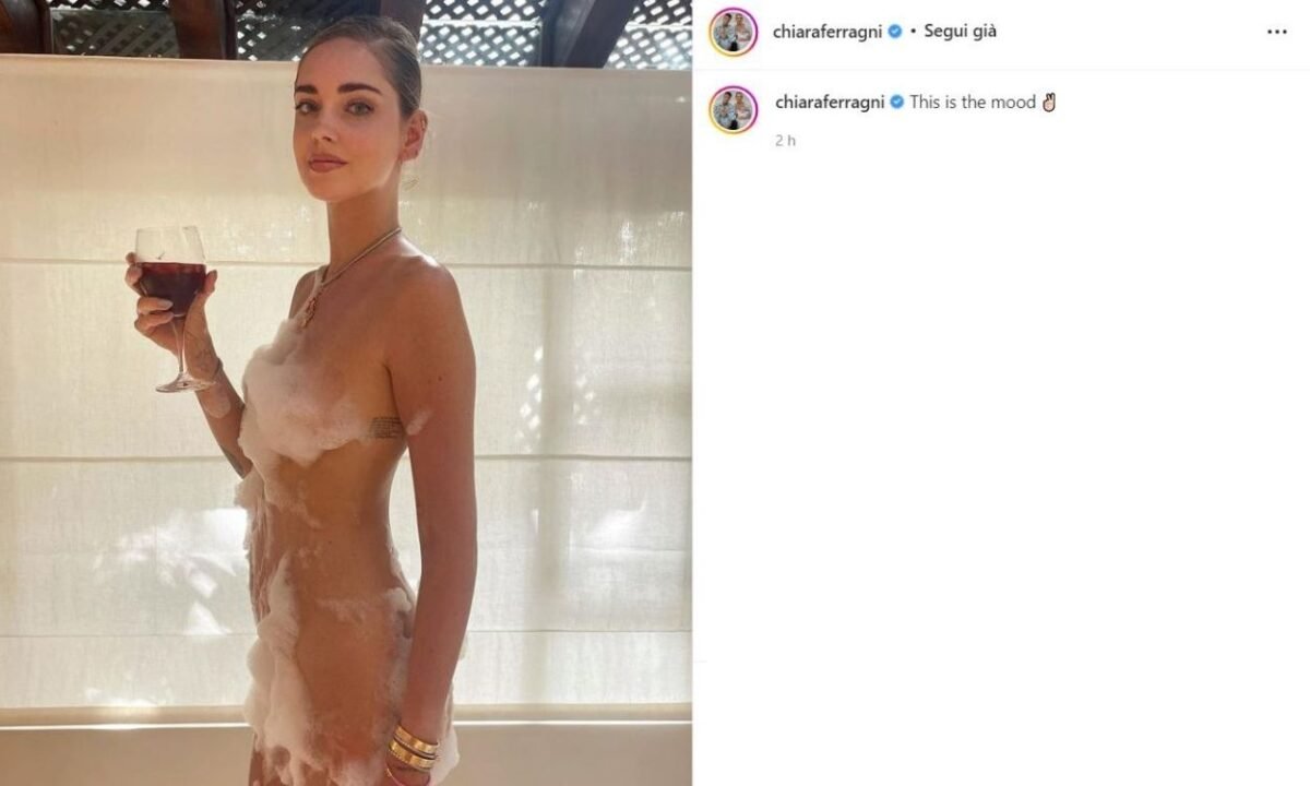 Chiara Ferragni non è nuova a foto molto sensuali pubblicate sui social, ma questa volta ha lasciato ben poco all’immaginazione. L’influencer, infatti, ha posato completamente nuda, e coperta solo dalla schiuma, appena uscita dalla vasca da bagno, con un bicchiere di vino in mano. Anche se la schiuma ha coperto saggiamente le parti del corpo che non possono essere mostrate, ma lo scatto è comunque molto sexy e forse ancora più sensuali per l’effetto vedo/non vedo creato sulle curve dell’influencer.