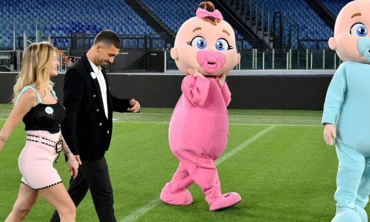 Dato che Mattia Zaccagni è uno dei calciatori della Lazio, la coppia ha deciso di rivelare il sesso del bambino, che sarà un maschietto, direttamente dallo Stadio Olimpico di Roma. Il giocatore si è posizionato sul dischetto del rigore, davanti alla porta, e nel momento in cui ha calciato la palla dietro di lui sono esplosi dei coriandoli azzurri con l’annuncio “It’s a boy“, che è apparso sul maxi-schermo dello stadio.
