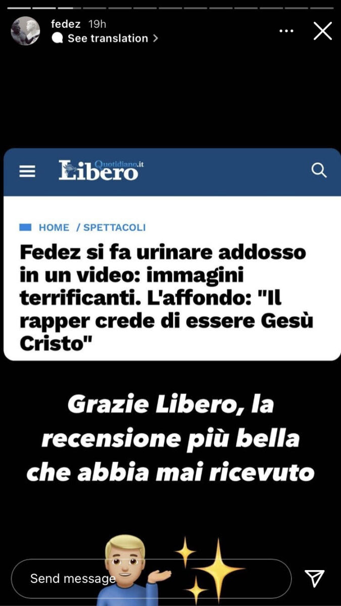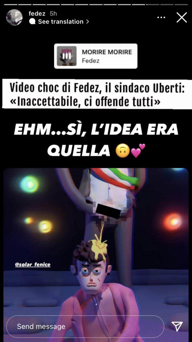 “L’idea era quella“, risponde sarcasticamente su Instagram il rapper all’accusa di offendere tutti i sindaci italiani attraverso la scena del suo video, e ai titoli offensivi e sensazionalisti di Libero sull’argomento, il musicista si finge entusiasta della recensione.