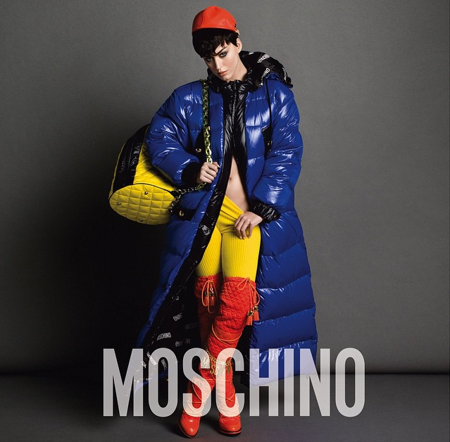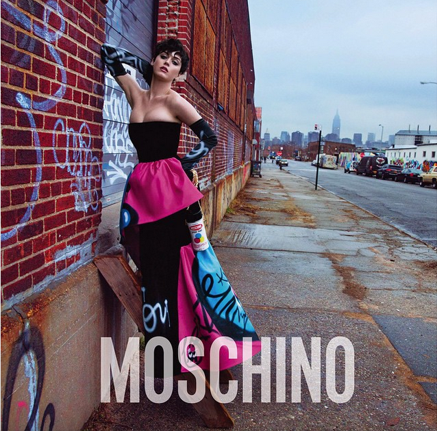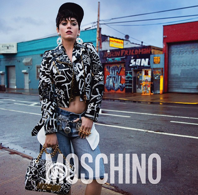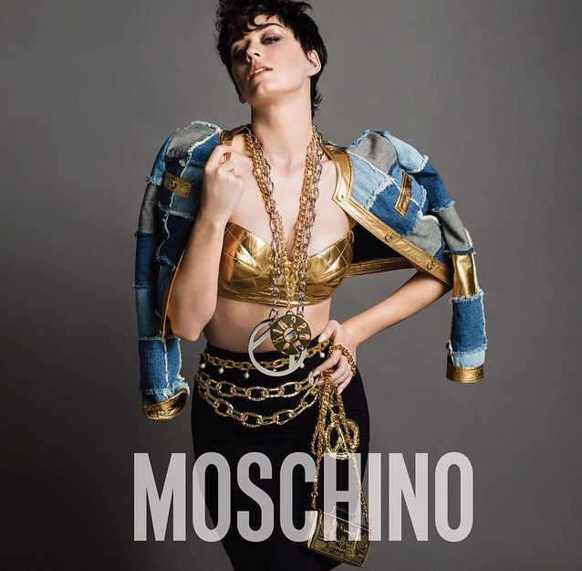 Katy Perry è la nuova testimonial per Moschino. Lo ha dichiarato lei stessa attraverso i suoi canali social, pubblicando le immagini del servizio fotografico, curato da Jeremy Scott e scattato da Inez e Vinoodh, che la ritraggono in posa con capello corto, reggiseno di pelle color oro, catene e gonna a tubo nero per il lancio della nuova campagna autunno/inverno 2015/2016.