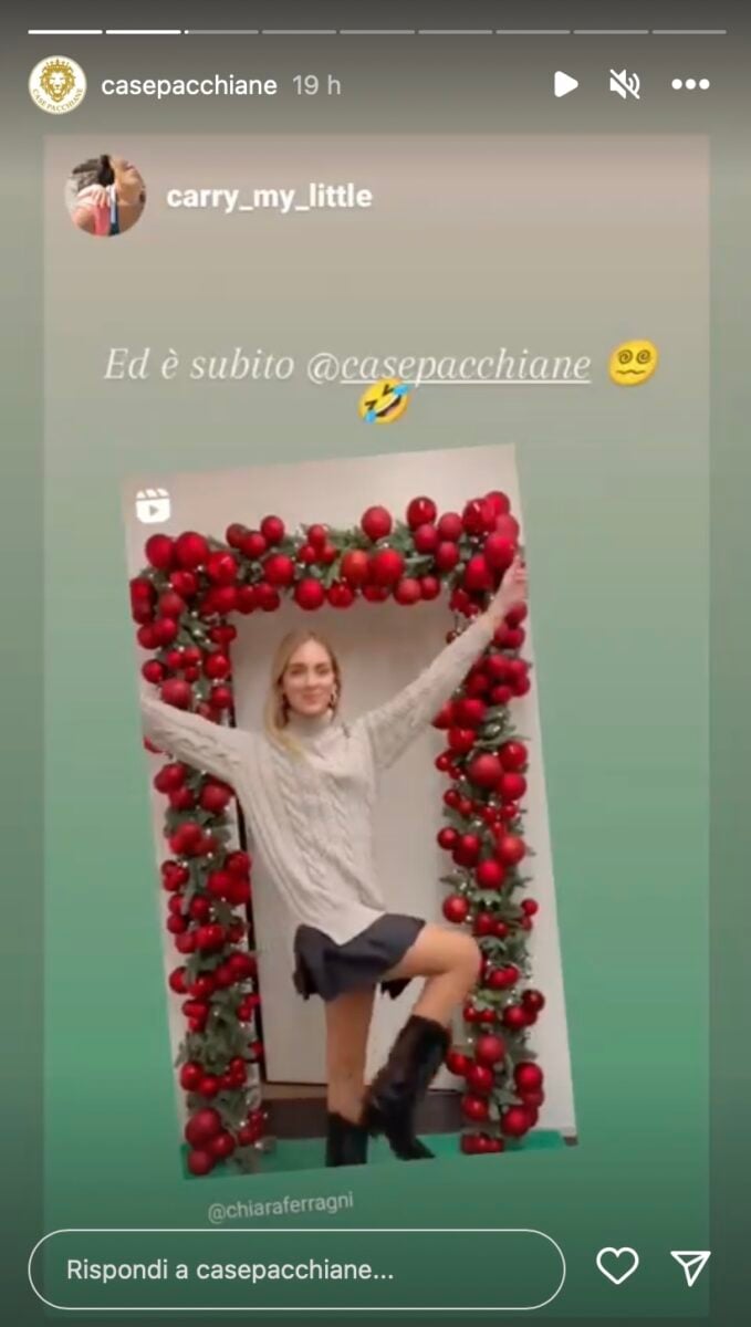 Sotto al post della Ferragni in cui la donna mostra fiera la sua casa, infatti, è apparso il commento di Case Pacchiane con scritto “buonasera”, a far intendere che anche la sua abitazione rientra nella categoria di cui parla sempre il profilo; poco dopo, invece, il reel della donna che mostra gli addobbi è stato riportata dall’account tra le stories, proprio perché segnalatissimo dagli utenti.