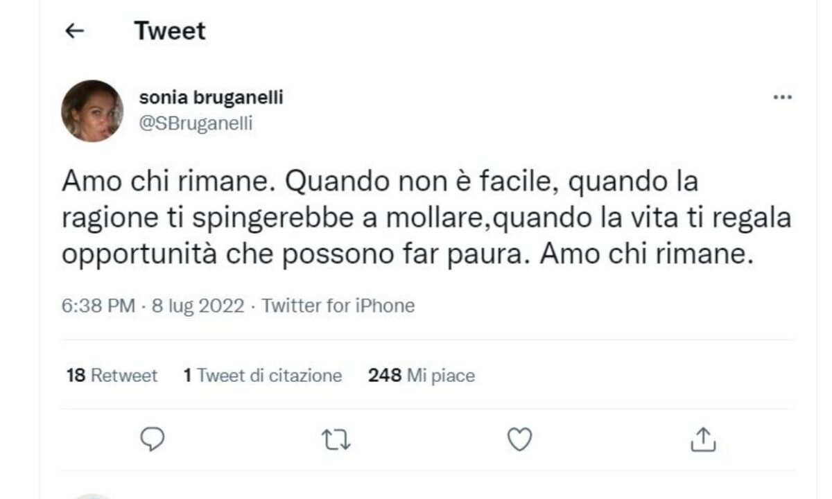 Il tweet in questione sembra una bella dedica d’amore nei confronti di una persona che, nonostante i momenti difficili, non si è mai arresa e ha deciso di restare. Potrebbe trattarsi proprio di Paolo Bonolis che, pur tra mille difficoltà, ha deciso di rimanere accanto a Sonia Bruganelli e alla famiglia che hanno formato?