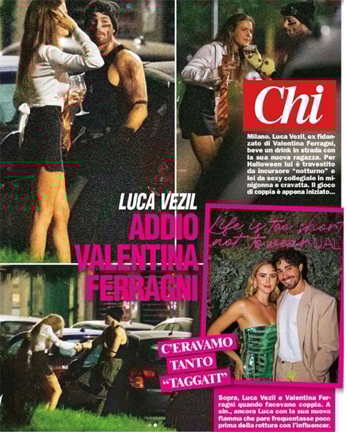 L’addio ufficiale a Valentina Ferragni risale a poche settimane fa; a quanto pare, però, il bel modello avrebbe già ritrovato l’amore. Luca Vezil, infatti, è stato paparazzato da Chi nella notte di Halloween con una ragazza vestita in maniera molto provocante.