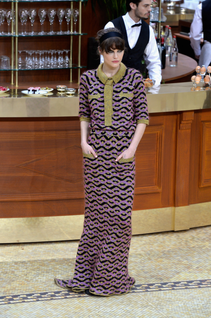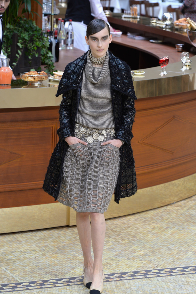 Nella cornice del Grand Palais, trasformato per l’occasione in una brasserie, Karl Lagerfel presenta una collezione che attinge dal gusto e dallo stile degli anni ’60 per spiccare il volo ed esplorare contaminazioni contemporanee e futuristiche, oscillando tra classicità e sperimentazione, lusso e ready to wear.