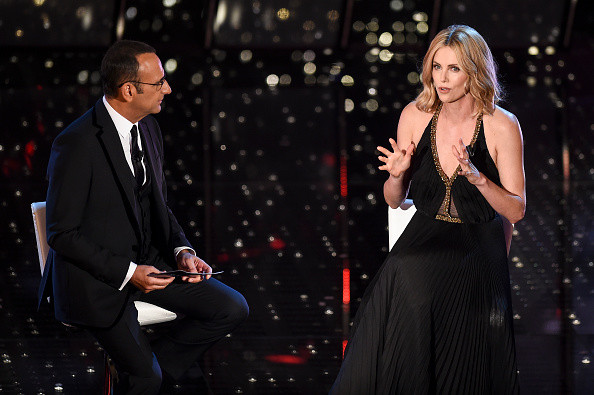 Come si sa, oltre alle canzoni ci sono come sempre gli ospisti: si inizia con Joe Bastianich, alla prese con un’improbabile versione della Quando di Tony Renis. Poi è la volta di Biagio Antonacci, per l’occasione in total look Ermanno Scervino: prima un medley dei suoi brani più famosi e poi l’omaggio a Pino Daniele. Arriva quindi il momento della prima regina di serata, la bellissima Charlize Theron: racconta delle sue passioni musicali (gli U2 e Ramazzotti), del senso del suo lavoro, della sua condizione di donna e madre, dei suoi amori, del suo impegno in Africa. L’attrice sudafricano-americana ricorda la figura di Nelson Mandela da molto vicino (“mi rovesciò dello sciroppo sulla statuetta dell’Oscar, la lasciai così”). C’è anche un intermezzo danzante: Rocío accompagnata dal ballerino Fabrizio Mainini ballano sulle note di Lei verrà, doveroso omaggio a Mango.