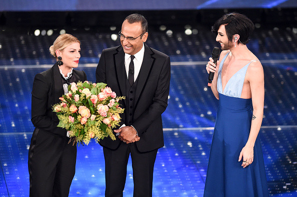 Coi comici quest’anno non va benissimo al Festival: Angelo Pintus non scivola su nessuna gaffe, ma fatica a strappare più di una risata nel corso del suo lungo intervento. Questo palco ha agghiacciato tanti (vedi Maurizio Crozza), e per il ragazzo uscito dal Colorado Café non è diverso: le sue gag sulle lingue, il vecchio adagio antifrancese, non funzionano nella più grande finestra mediatica del nostro Paese. Nemmeno quando Pintus prova il registro serio, con un omaggio a Charlie Hebdo. Breve incursione di Vincenzo Nibali, vincitore dell’ultimo Tour de France e di Amendola & Argentero che presentano la loro ultima fatica al cinema. Con i Boiler, comici giornalisti, arriva altro vento freddo in sala. E si arriva così alla seconda grande ospite della serata: la drag queen austriaca Conchita Wurst, trionfatore all’Eurofestival. Canta come previsto molto bene, e parla pure altrettanto bene, difendendo la sua barba e più in generale la sua libertà artistica e umana. A riscattare una serata in cui si è riso dunque molto poco, Rocco Tanica, bastione degli Elio e Le Storie Tese, con la sua improbabile rassegna stampa. Arrivano infine i verdetti di serata: a rischio per la finalissima Bianca Atzei, Biggio & Mandelli. E, a sorpresa, Moreno e Anna Tatangelo.