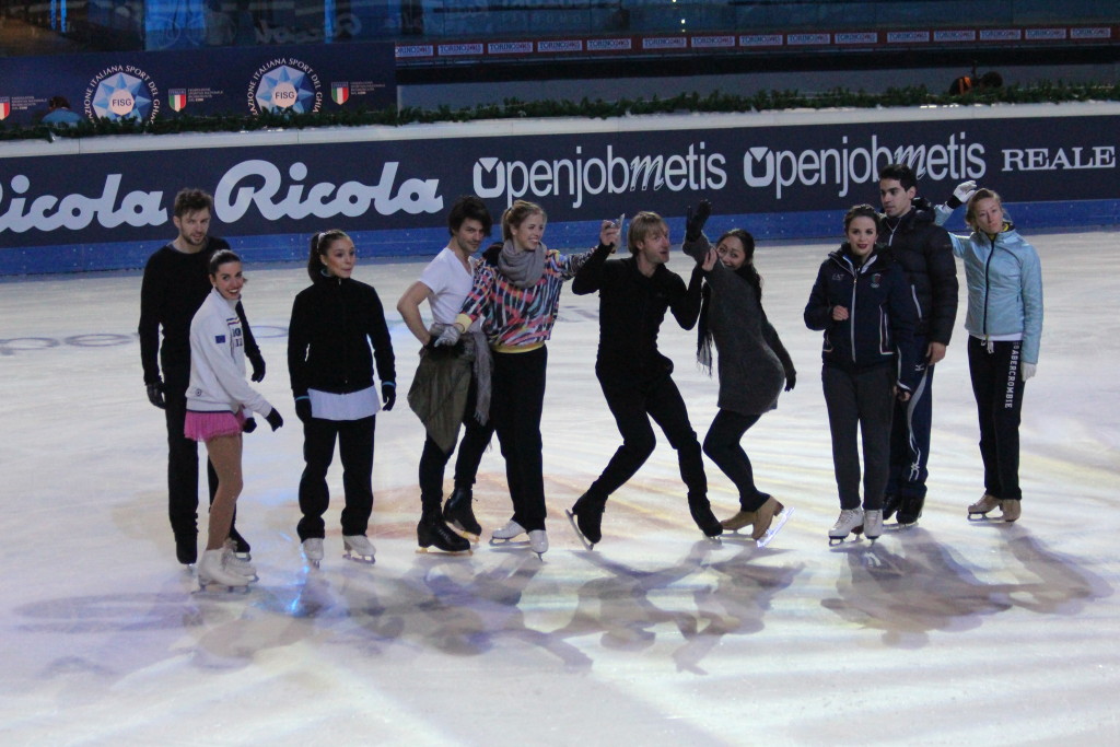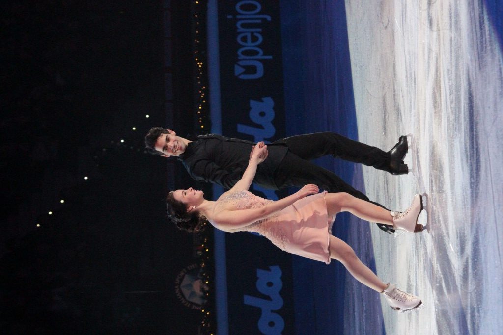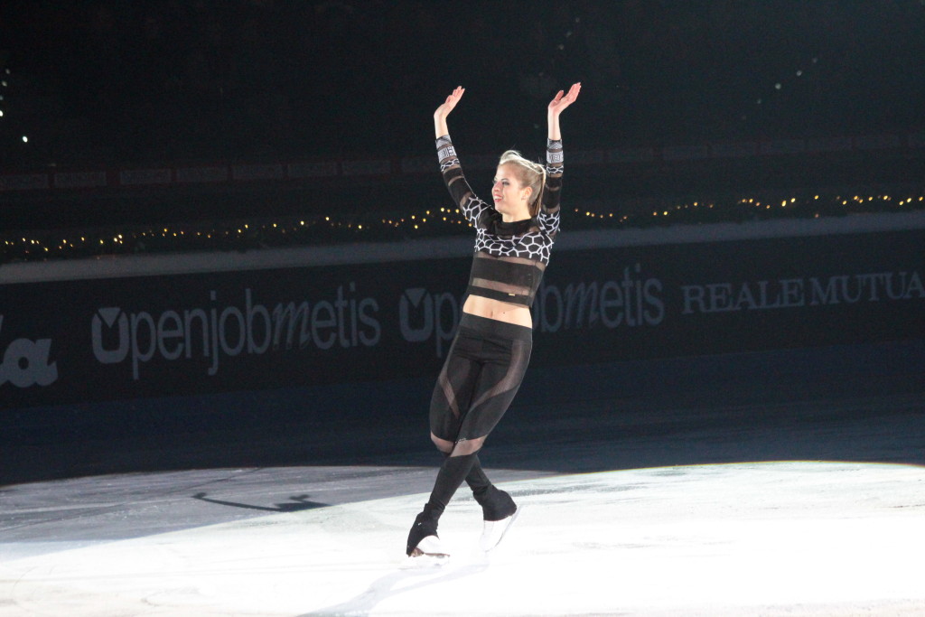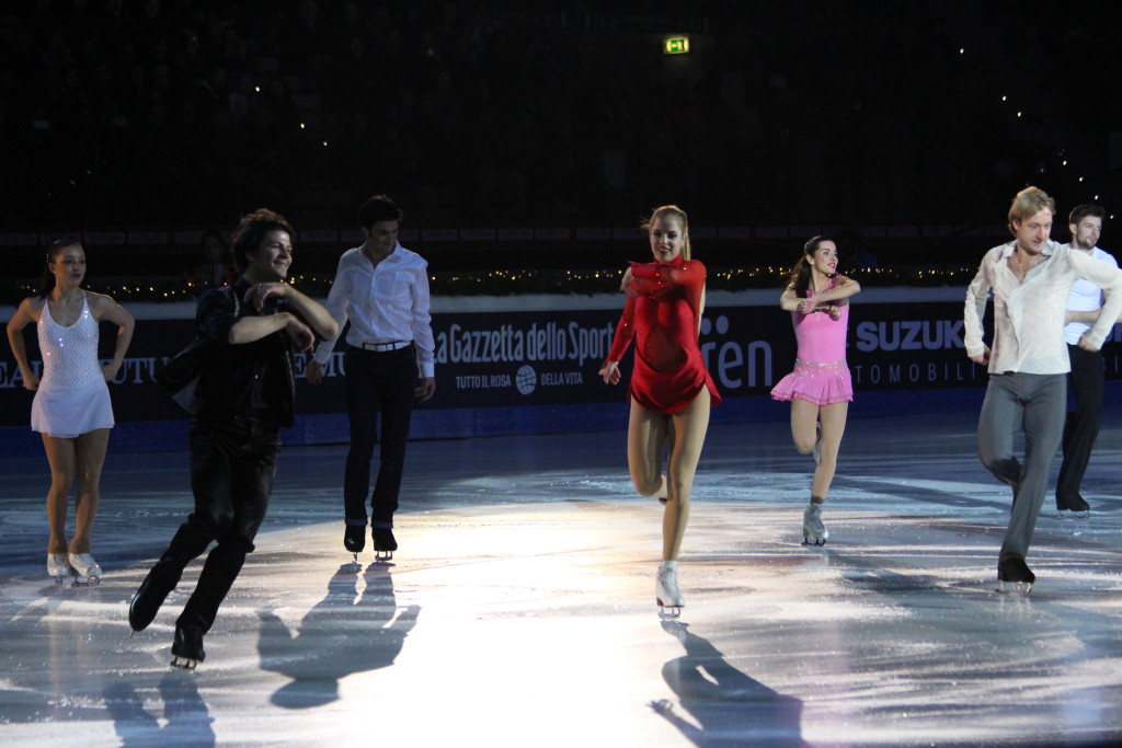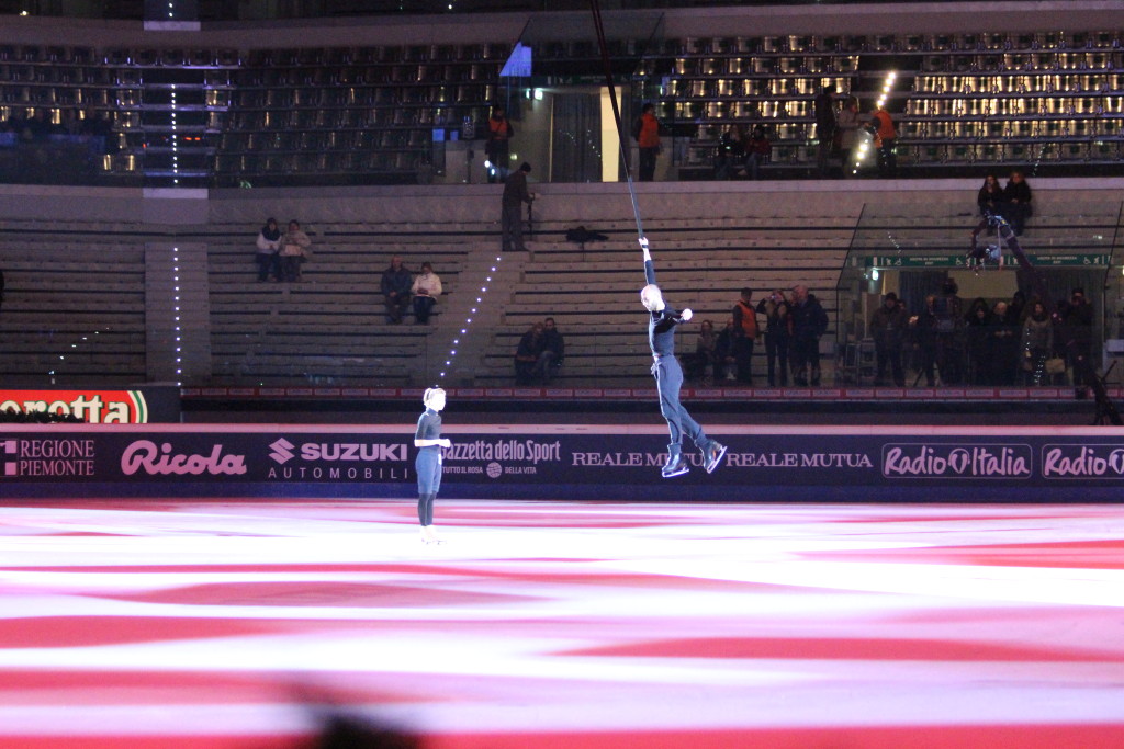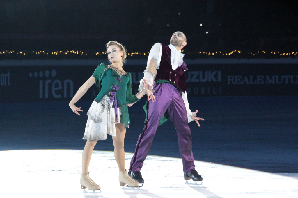 Noi di UnaDonna eravamo presenti e non siamo riusciti a restare ‘immuni’ al fascino dell’ambiente del pattinaggio e dei suoi protagonisti: sarà che di per sé è uno sport immerso tra lastre ghiacciate e rimanda subito alle amosfere incantate; sarà che vedere loro, i campioni, mentre volteggiano nelle loro esibizioni magnifiche ci ha lasciato davvero a bocca aperta per la loro bravura e per la tecnica squisita; sarà anche stata complice l’incredibile bellezza dei costumi tempestati di Swarovski, ma per una sera ci siamo sentiti parte di questo mondo magico che non esiste solo in scena: abbiamo assistito alle loro prove e la loro leggiadria nei movimenti, la gestualità sinuosa, le chiacchiere che scambiano nei momenti di pausa appaiono tutti come istanti di eleganza innata, armoniosa fluidità nei gesti impalpabili che risucchiano lo spettatore in un mondo fantastico.