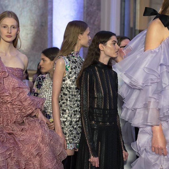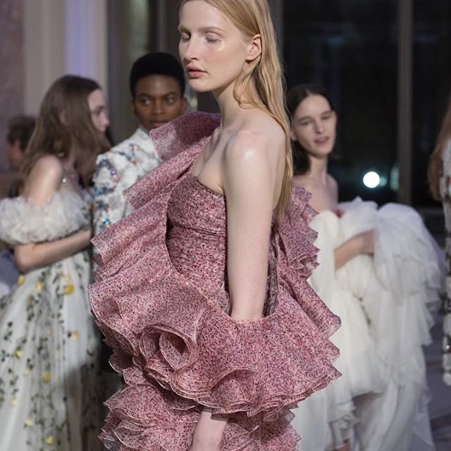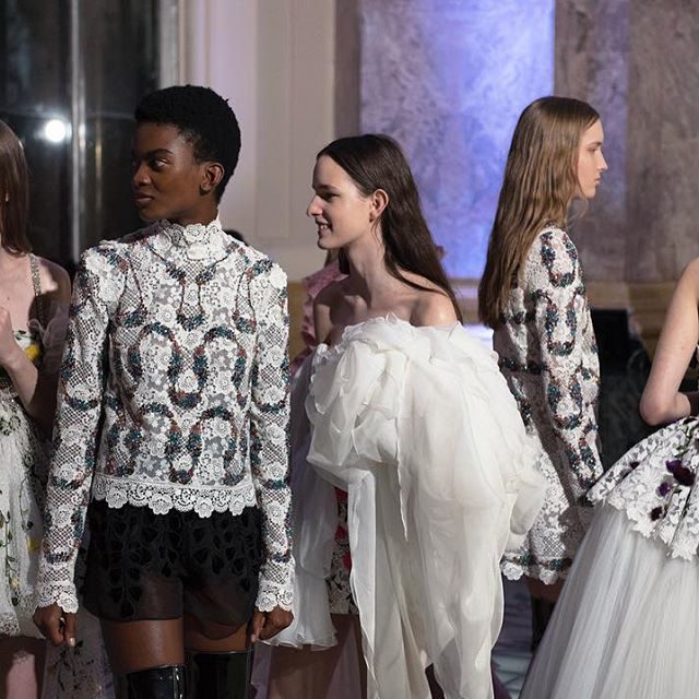 Gli abiti di Gianbattista Valli sono una nuvola, un sogno fatti di tulle, ricami e decori. E per rendere tutto soave, il make-up scelto per la sfilata è etereo e impalpabile, giocato sulla naturalità e su punti di luce intensi.