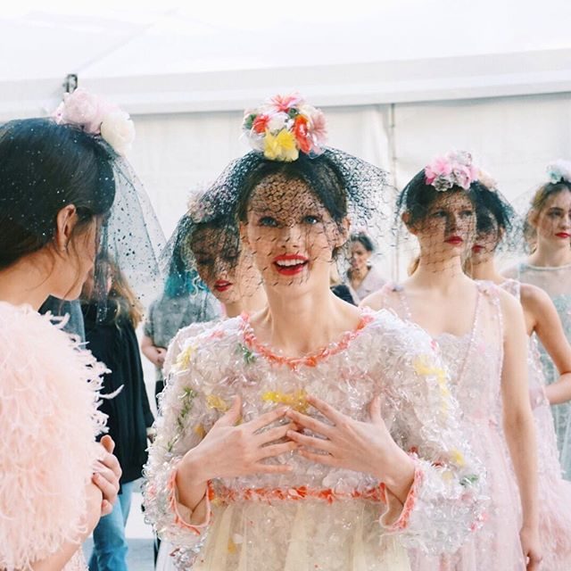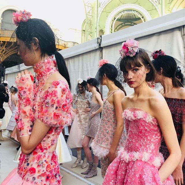 È un inno alla primavera, con i suoi fiori e i suoi colori la sfilata di Chanel. Viola, verde, rosa, azzurro, bianco sono le tonalità dominanti, fresche e luminose come una mattina di maggio.
