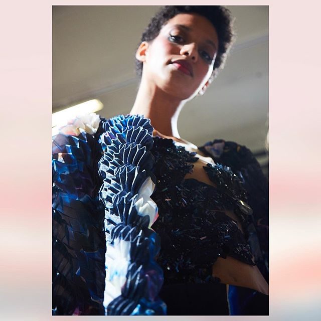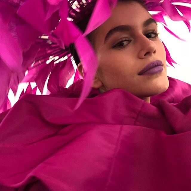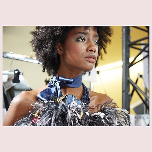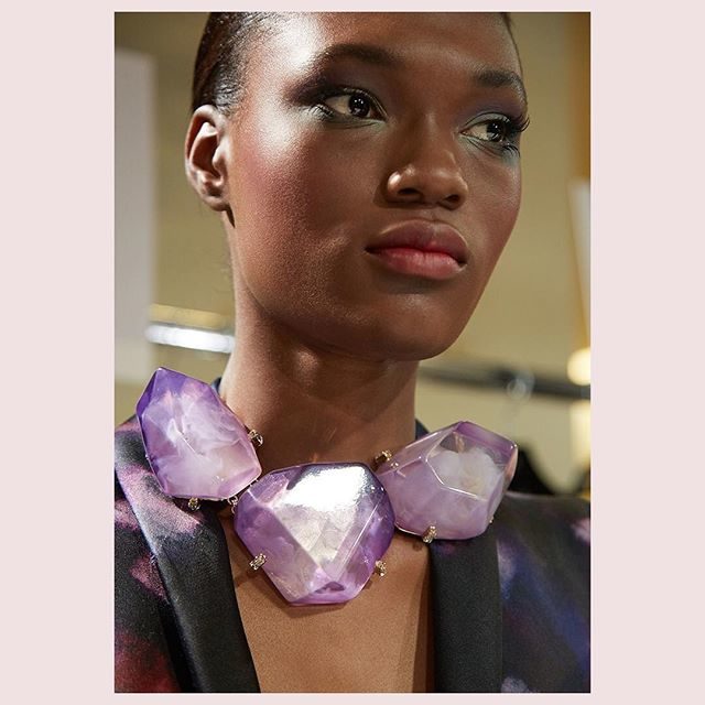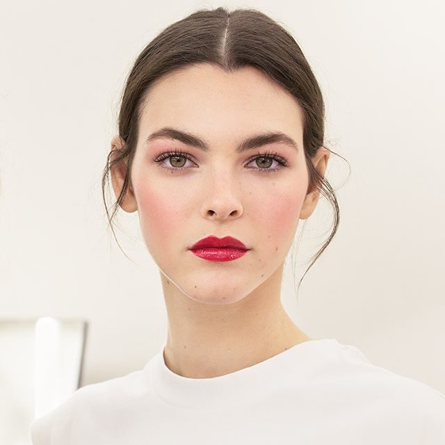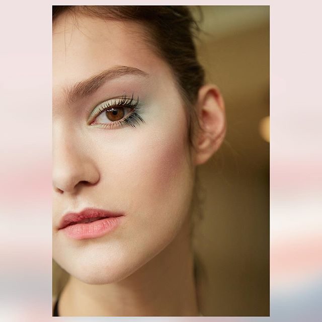 Nella collezione primavera estate 2018, dedicata alle sarte e ai sarti che rendono possibili i sogni in tessuto della Maison Valentino, il makeup si tinge di bagliori di colore con l’arancione sugli occhi e il lilla sulla bocca. Il resto del viso ha una base perfetta, con sopracciglia evidenti e definite che incorniciano gli occhi.
