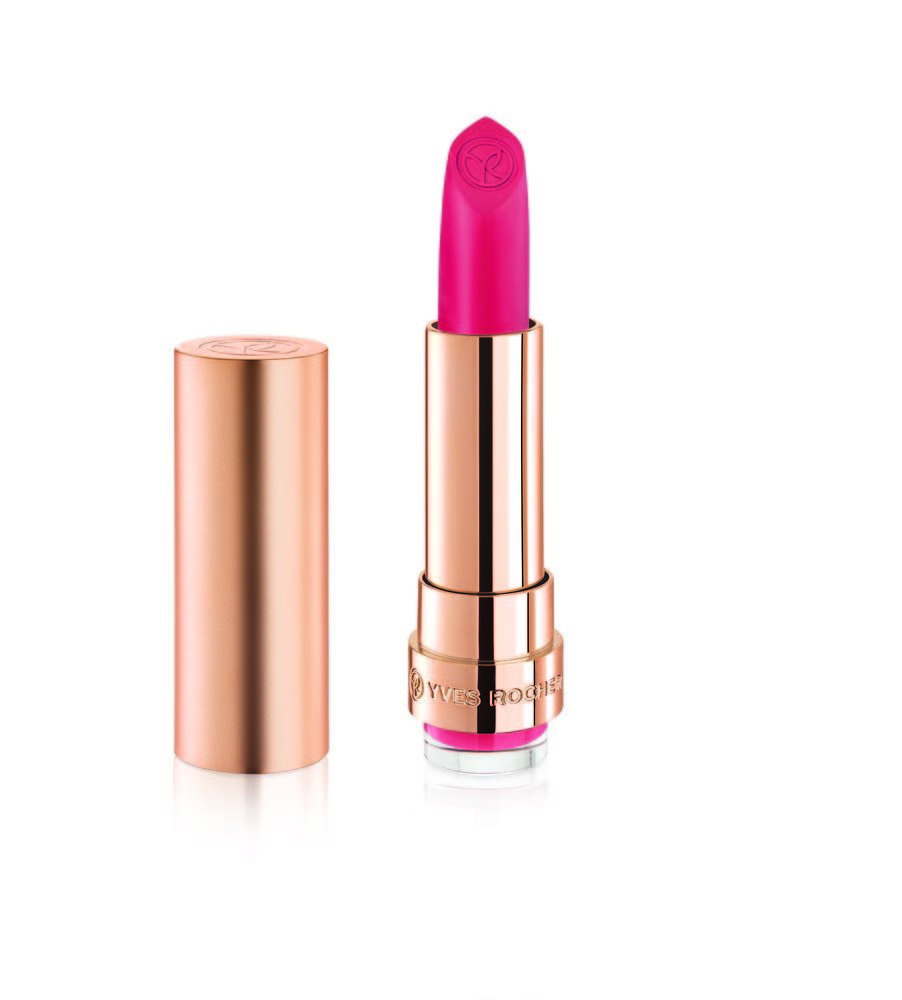 Per ottenere un effetto simile, è perfetta la nuova proposta Grand Rouge Mat, nel colore 155, di Yves Rocher, il rossetto ricco di pigmenti, dall’effetto opaco ad alta coprenza, che, grazie all’azione rigenerante dell’olio di camelia, assicura un effetto mat ultra confortevole. E per un effetto solo un po’ più lucido, un tocco di gloss trasparente al centro delle labbra.