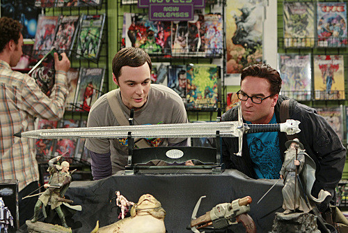 L’episodio dell’”acquisto” è il quinto della quinta stagione (The Russian Rocket Reaction, in italiano La Reazione del razzo russo) e da allora la spada fa bella mostra di sè a fianco della porta di ingresso nell’appartamento di Leonard e Sheldon.