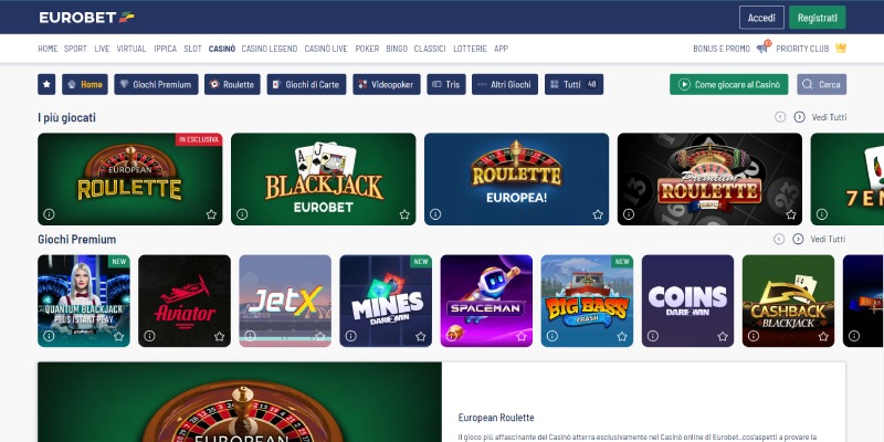 • 🏆 Eurobet Casino: miglior bonus senza deposito